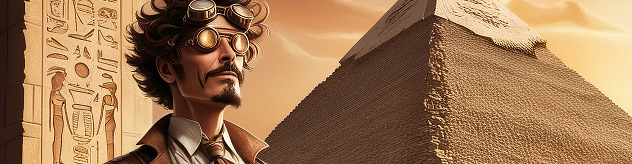 Ich schiebe meine dampfbetriebene Brille zurecht und stelle mich vor mein treues Publikum, die Zuhörer in den Bann meiner neuesten Zeitreise zu ziehen. Meine Stimme hallt durch den Raum, als ich zu erzählen beginne: „Heute, meine werten Freunde, entführe ich euch in die mysteriöse Welt des alten Ägyptens! Macht es euch bequem, und hört gut zu, denn dies ist die Geschichte, wie ich dem legendären Pharao Cheops begegnete.“